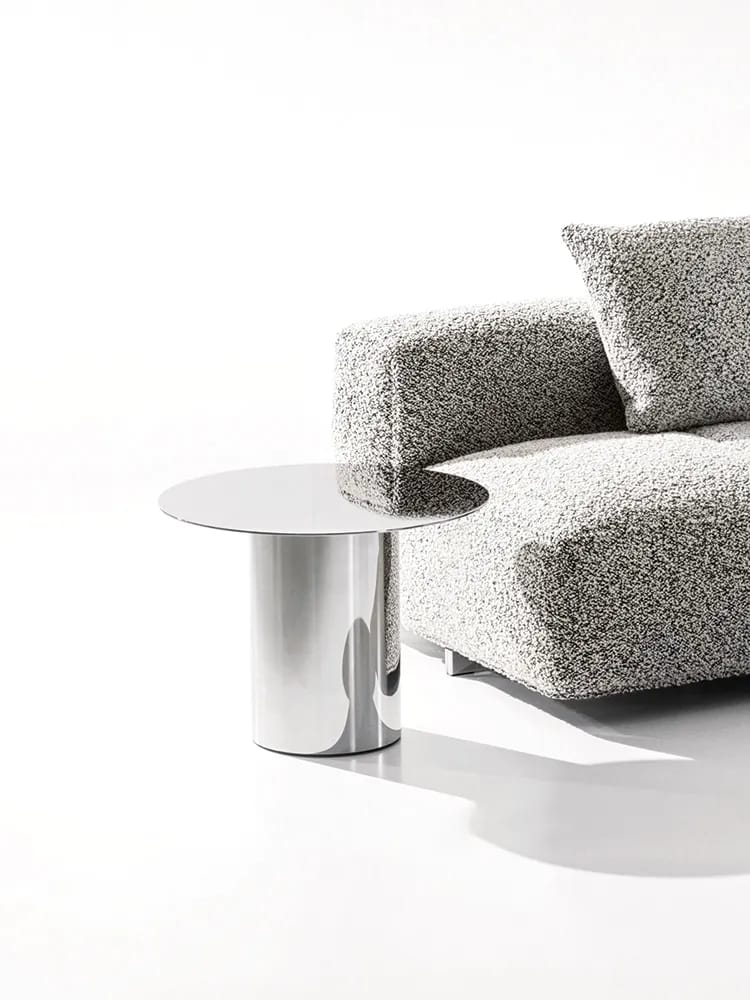 Distinguished by its apparent formal purity, Tokie is a side table with a base consisting of a monolithic cylinder that supports the slender disc serving as the top. Ideal to be welcomed into the sinuous curves of the Yves and Yves Sofà seating systems, it is available in polished stainless steel or painted metal in the colours Plum and Bronze: three variants that enhance its essential lines, making it elegant and decorative for any environment.