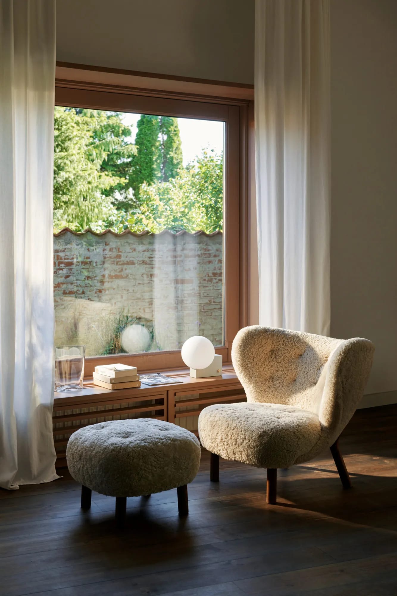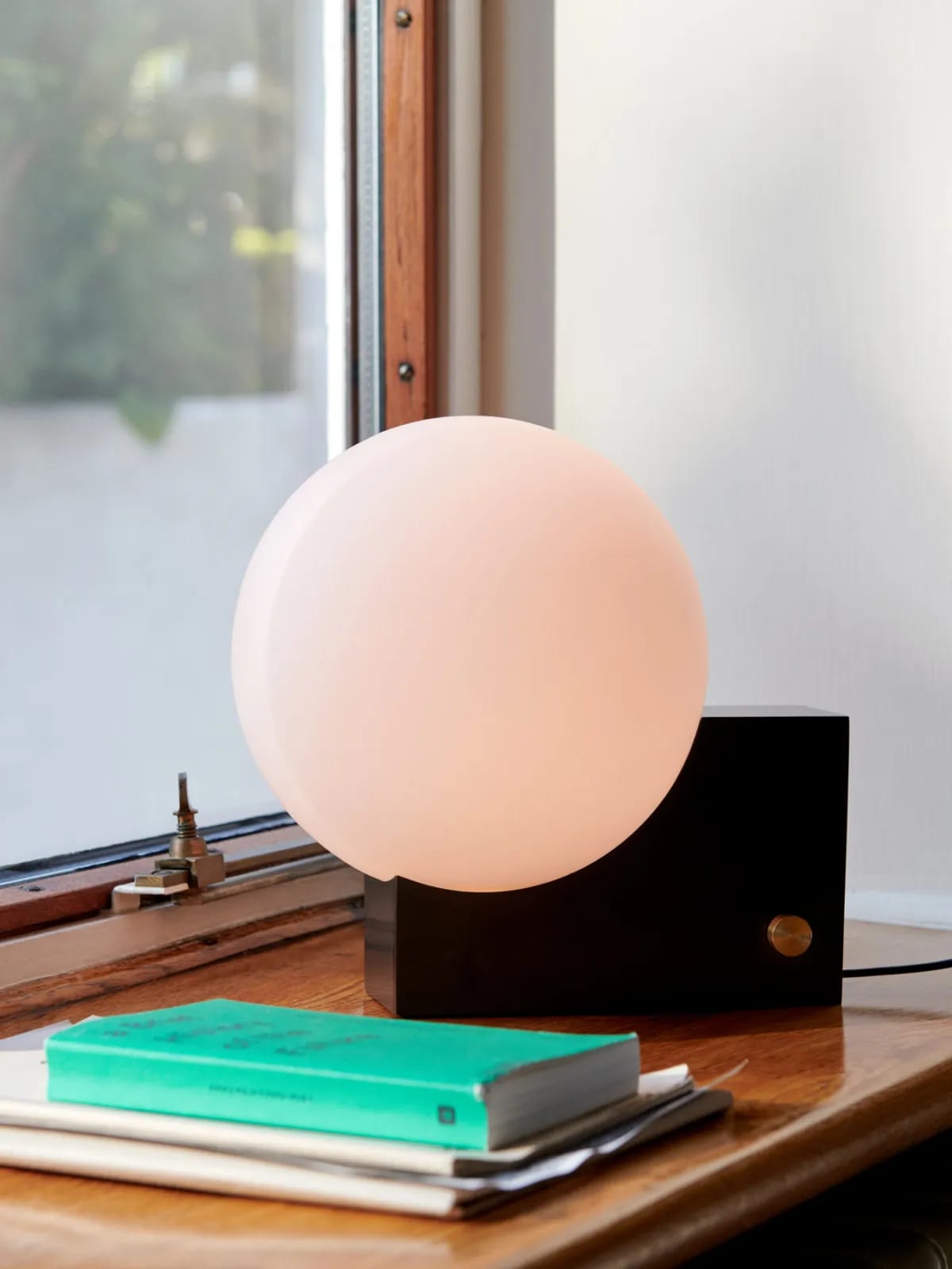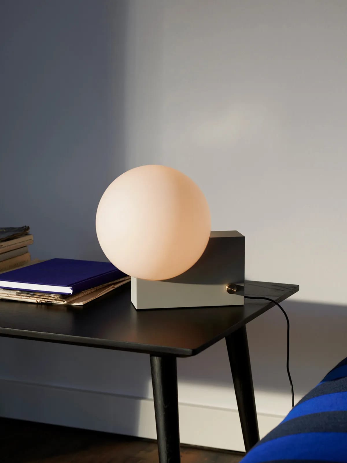 Denoted by its cubic base and curved opal shade, the Journey lamp exhibits an interplay between solid and translucent forms. With its sleek and geometrically playful character, the Journey lamp is a visually striking yet functional addition to any room.