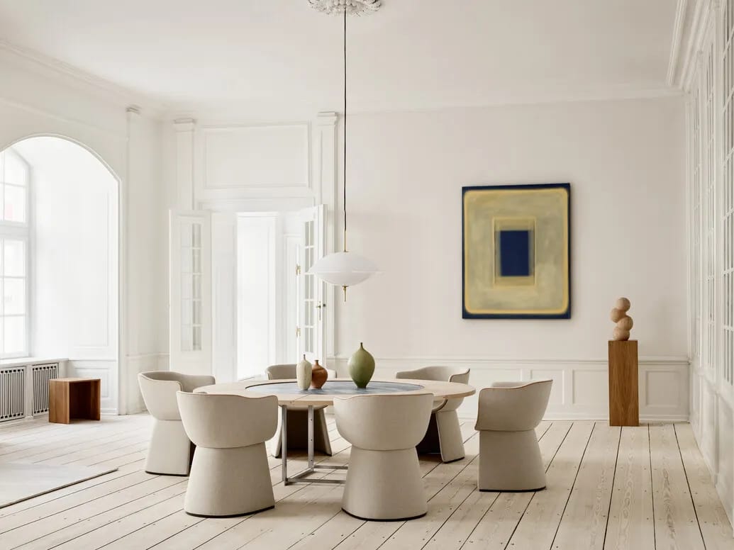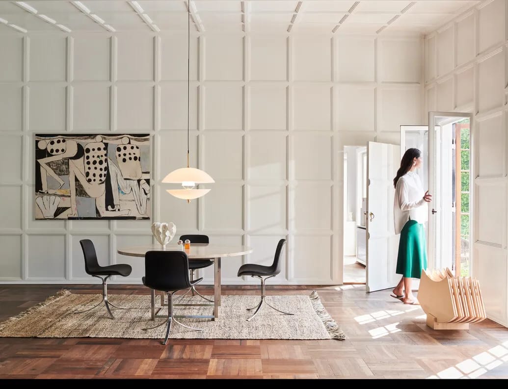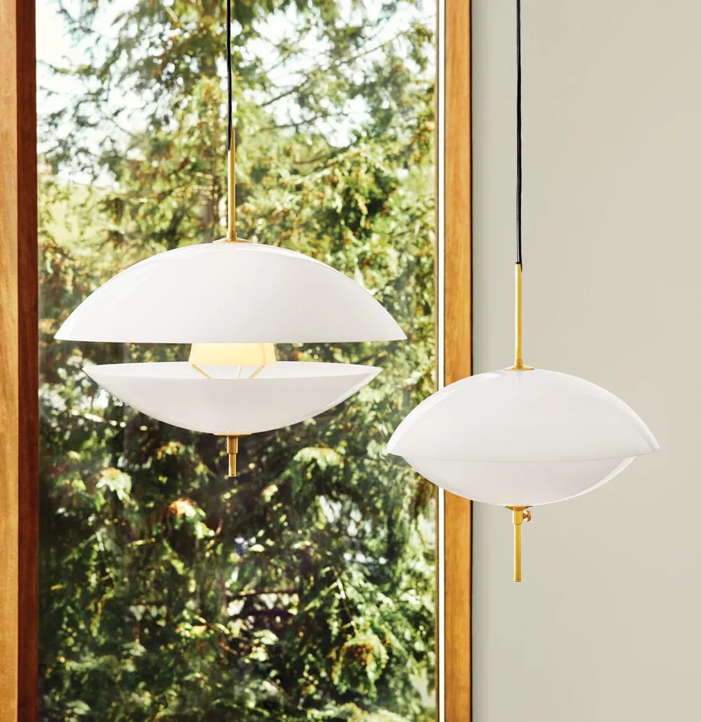 Inspired by the curved forms of seashells, Clam™ is a luxurious, new lighting fixture with timeless appeal. Balancing an upper and lower mouth blown opal glass shade on brushed brass fittings, the lamp glides open to reveal the pearlescent source of light within. It brings glare-free, mood-enhancing light to dining and living spaces alike. Equally elegant open as it is closed, the perfectly balanced design elevates any room with its considered combination of form and ambiance.