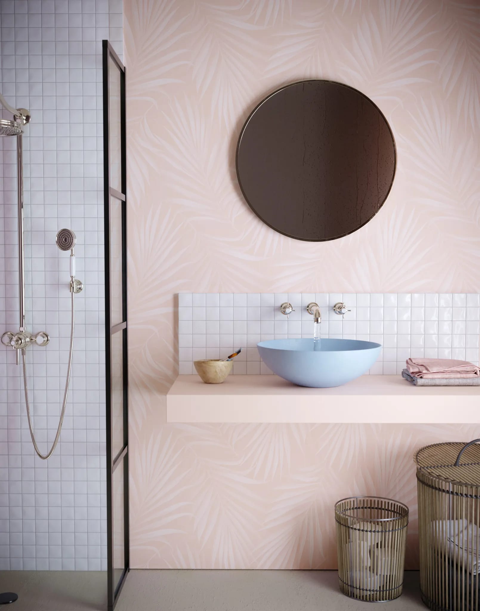 Taking inspiration from the Areca Palm plant, this impressive tropical wallpaper is reminiscent of being in thick, wild jungle. The depth of the design is instantly apparent, with the leaves being in both the background and the foreground. The end result is an immersive wallpaper with a lush, luxurious feel.