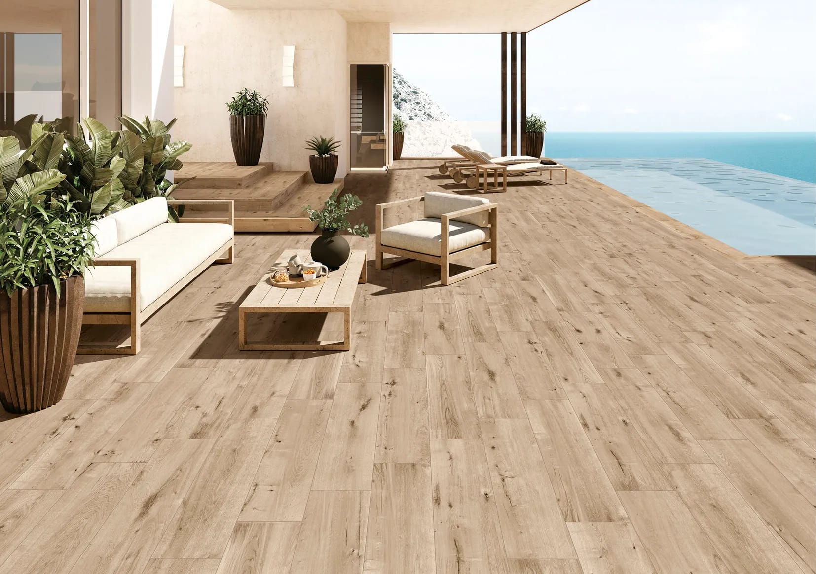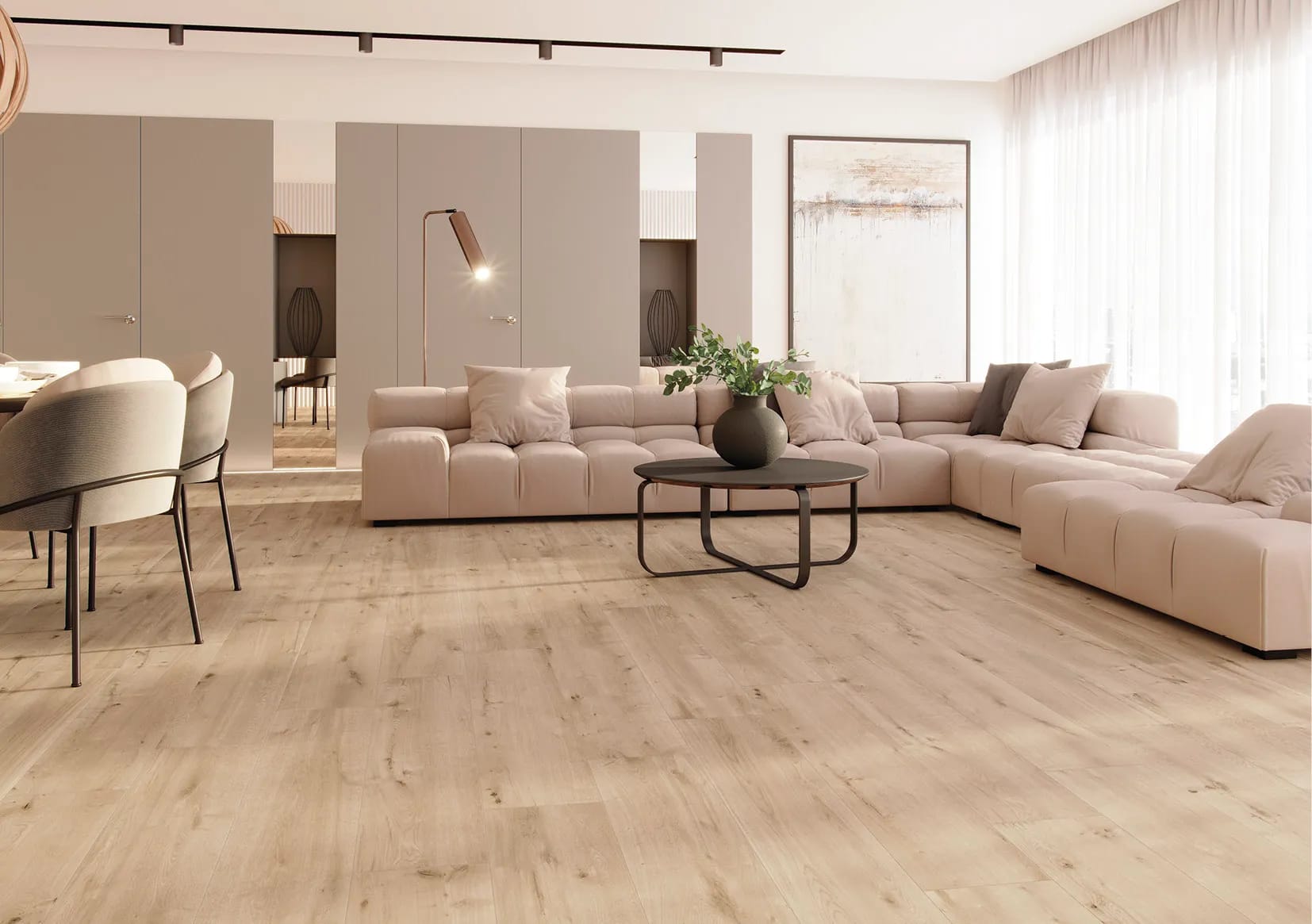 Amazonia emulates white oak wood. Its distinctive grain and knots run through the surface of the wood, providing an attractive texture with character and versatility, allowing it to suit both modern environments and more traditional styles that seek the perfect marriage of functionality and natural beauty. Our range of colours, Honey and Cinnamon, presents a captivating gradation of shades ranging from paler hues to deeper, darker tones.