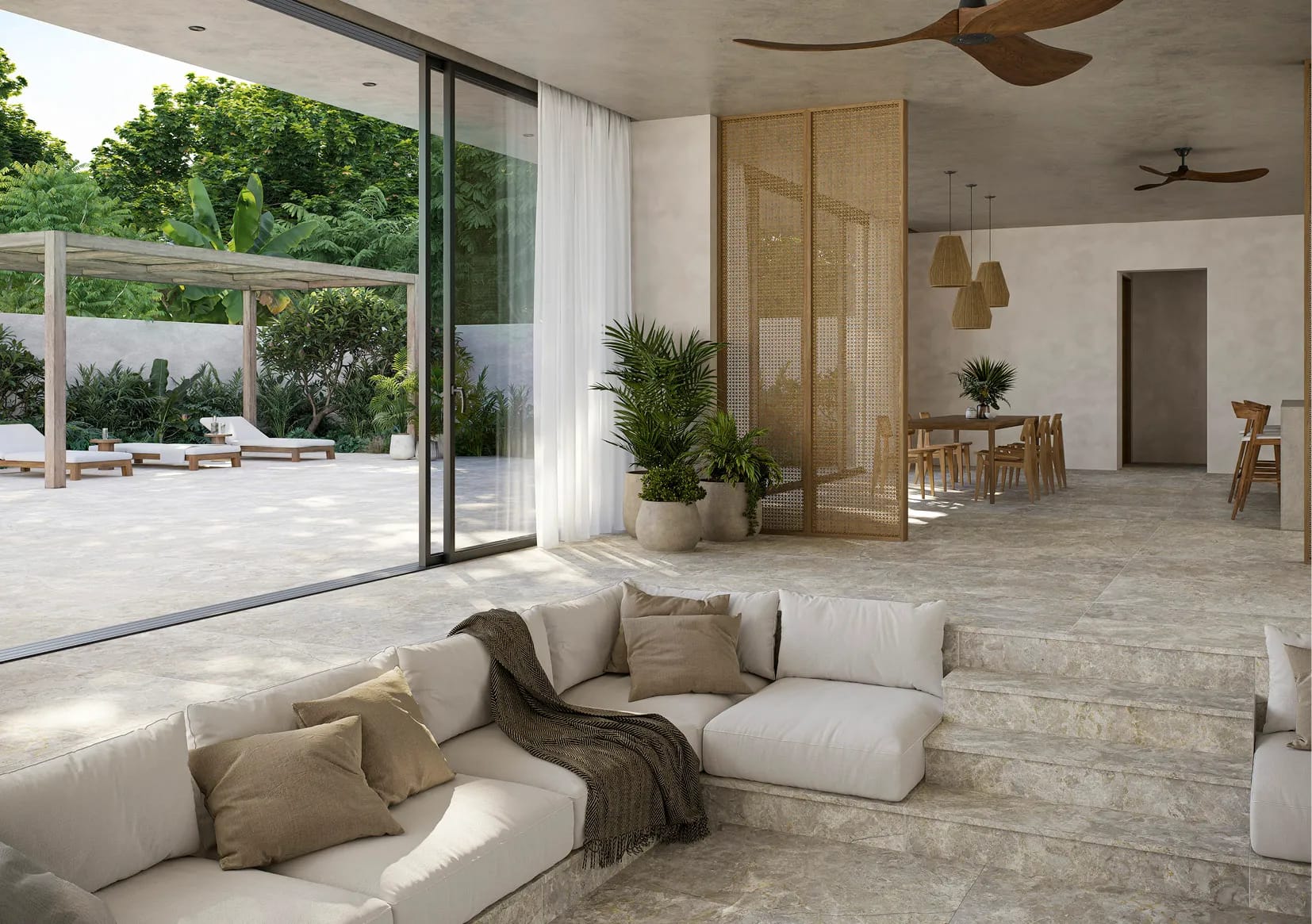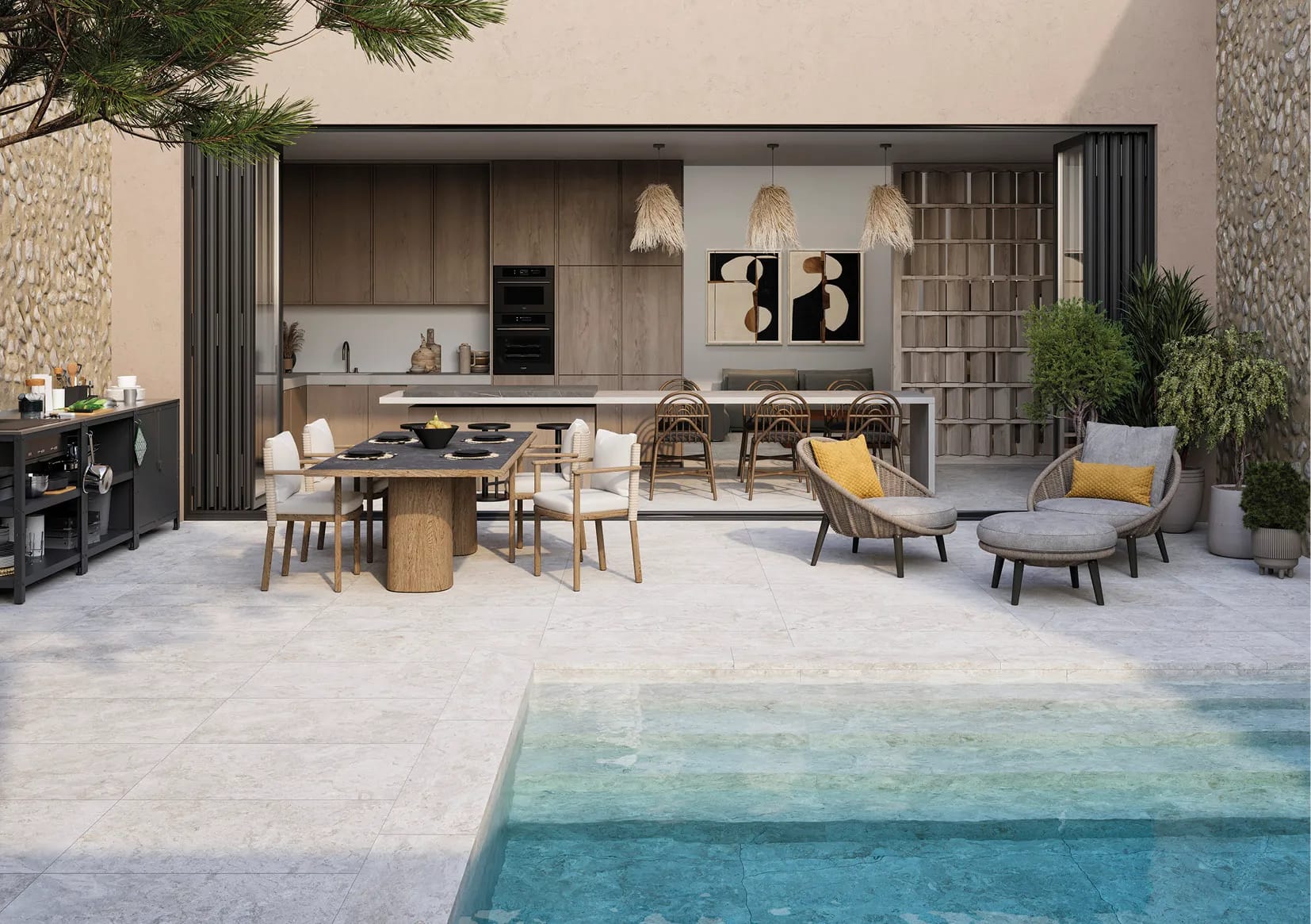 The Eterna collection is inspired by Fior Di Bosco stone, extracted from quarries in Tuscany. Its original tone is an elegant grey, full of leaden and smoky nuances interspersed with tree-like veins in shades of white and ochre. The collection brings sophistication and serenity. With its three colours, we range from the original and classic Cendra tone, to a vision in line with current trends such as Argent and Alba. It is perfect for large projects, both for interiors and exteriors, in residential and luxury hotel constructions.