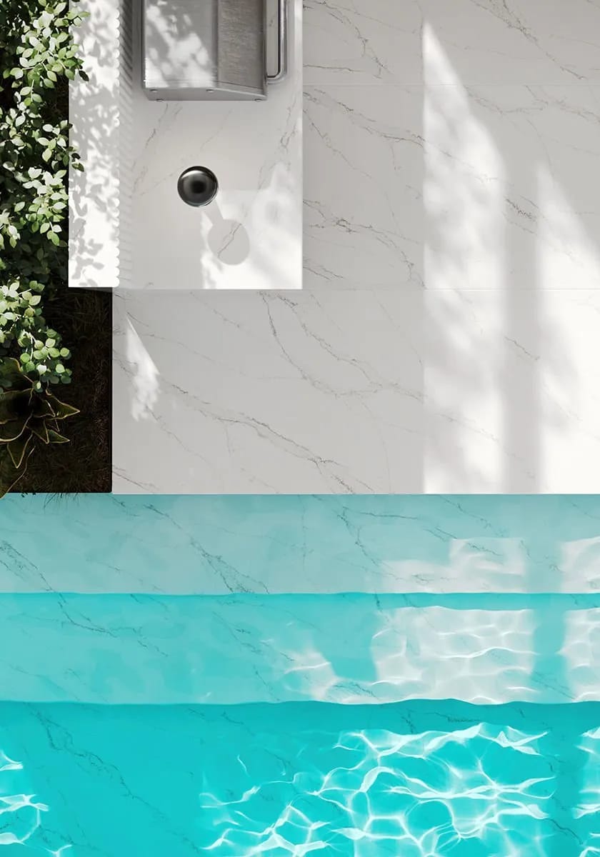 A pure and luminous white base welcomes an elegant interweaving of veins in shades of gray. A harmonious dance between broad and delicate streaks that blend with subtle and determined grains, creating a bold play of contrasts.