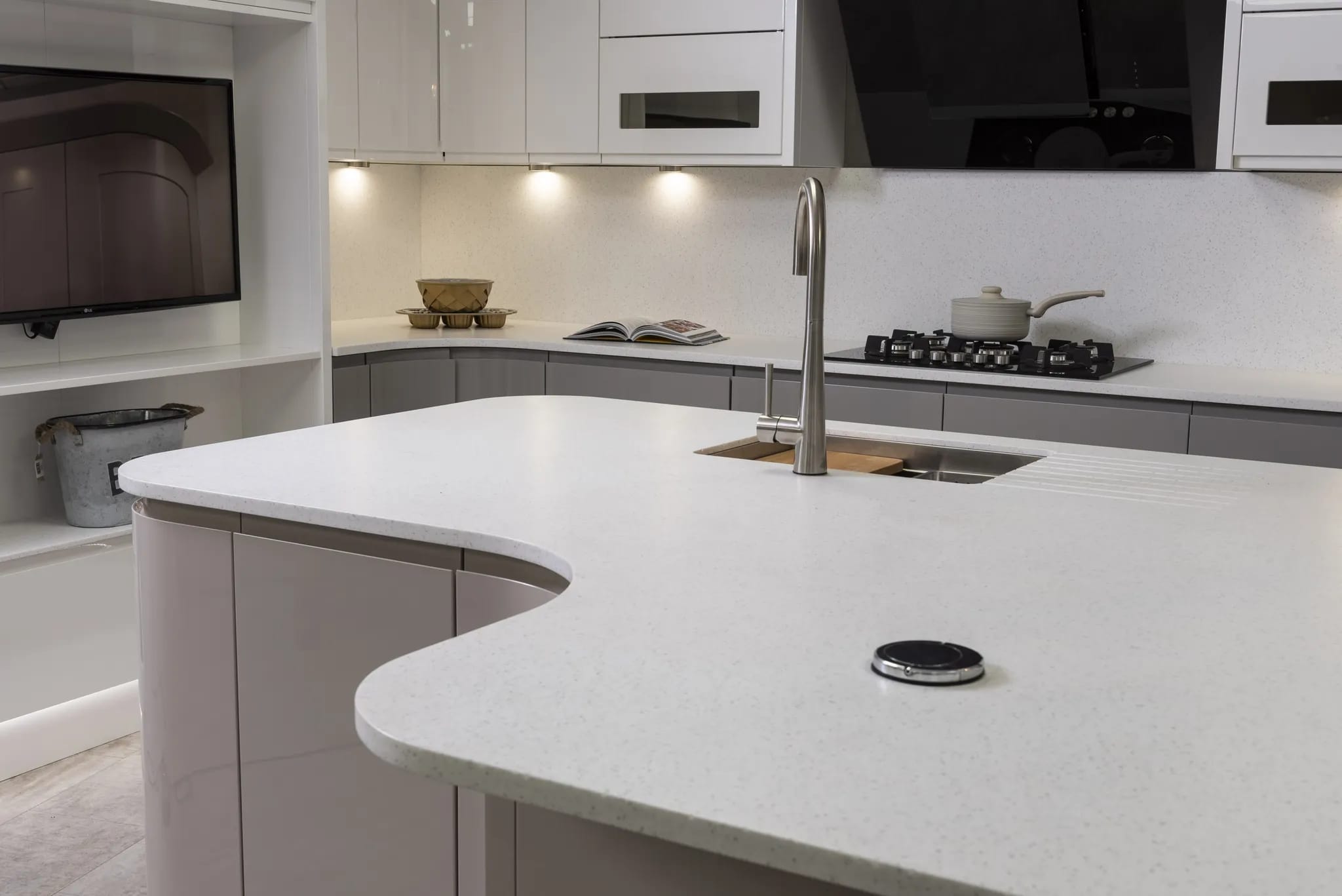 One of Staron's premium collections that displays the graceful patterns of stone. The splendour of its clear chips reflects light and will enhances any space.