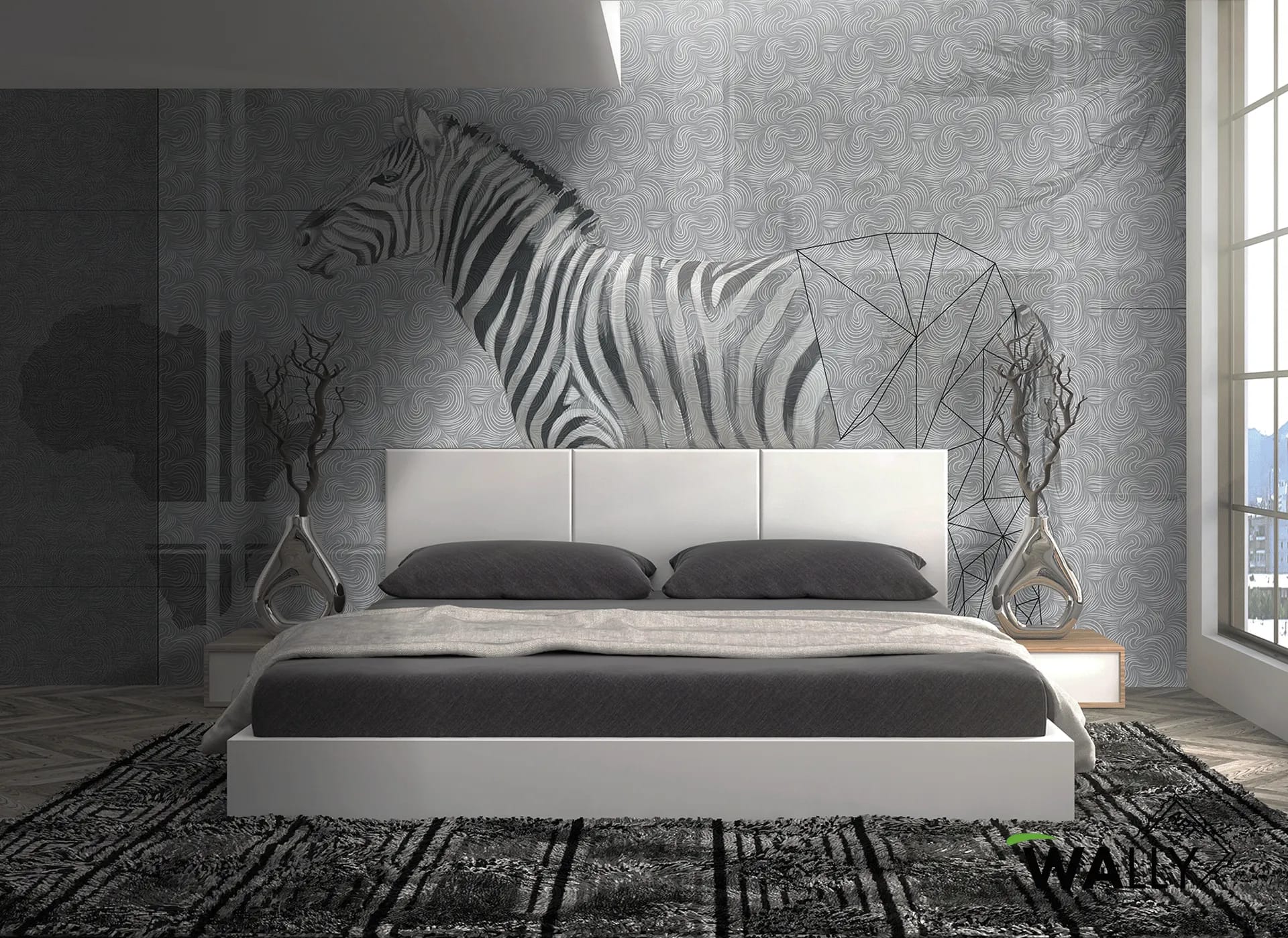 A good way to combat the symptoms of Africa sickness is definitely to bring a bit of Africa here. Zebra figure partly frescoed and partly created with the Low Poly technique on a background texture with black and white elements.
